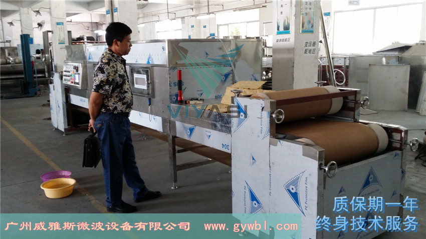 微波豆腐烘烤膨化是利用微波幅射加热,使物料中的水分吸热汽化,从而带动食品物料组织膨化的一种新的常压膨化技术。微波膨化由于其加热速度快,食品受热时间短,相对于挤压膨化、油炸膨化而言,其不易造成食品某些不必要的化学反应,且不增加食品的油脂。微波膨化技术加工食品能较大程度的保存食品原有的营养成分,加工时间短,并且膨化、干燥、杀菌工艺同时完成。